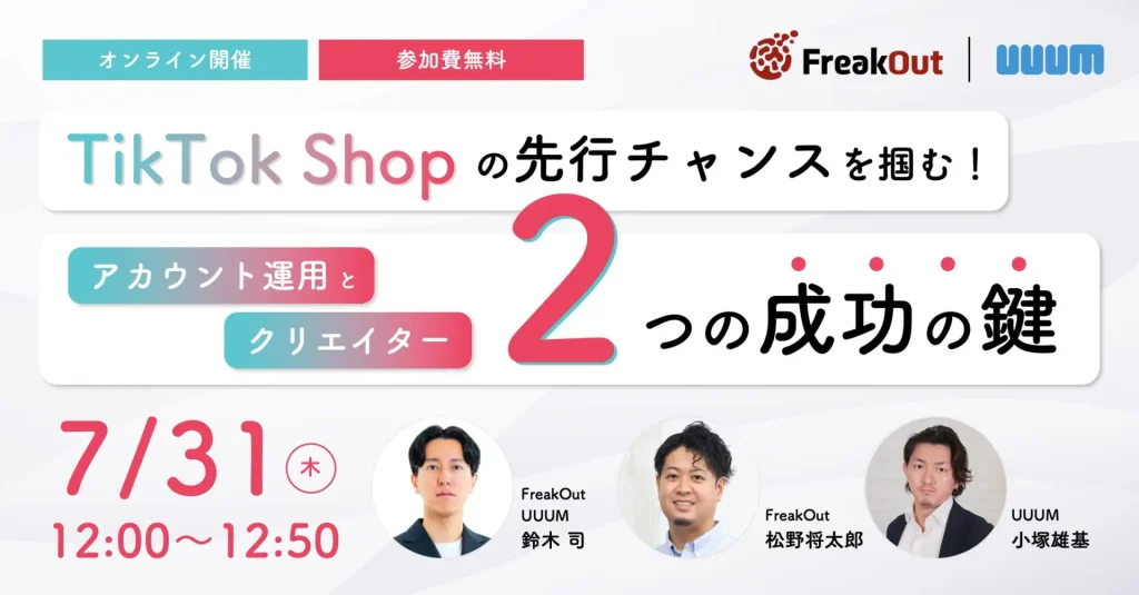 【ウェビナー開催のお知らせ】「 “TikTok Shopの先行チャンスを掴む!” アカウント運用とクリエイター、2つの成功の鍵~発見型Eコマースの効果的な活用術~」と題したオンラインセミナーを開催
