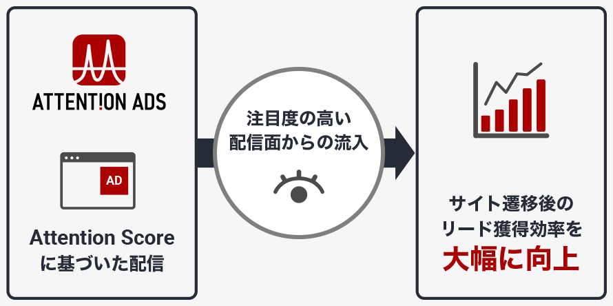 Attention Scoreに基づいた配信により注目度の高い配信面からの流入が期待でき、サイト遷移後のリード獲得効率を大幅に向上させます。