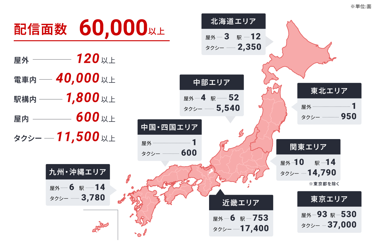 道府県単位でエリアを指定したタクシー広告配信を通じて、屋外でのリーチを拡張可能です。