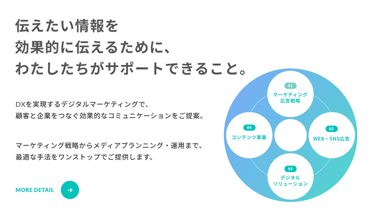 大手広告代理店に比べ、価格は抑えつつもマーケティング戦略からメディアプランニング・運用まで、最適な手法を親身となりワンストップでご提供できる点です。