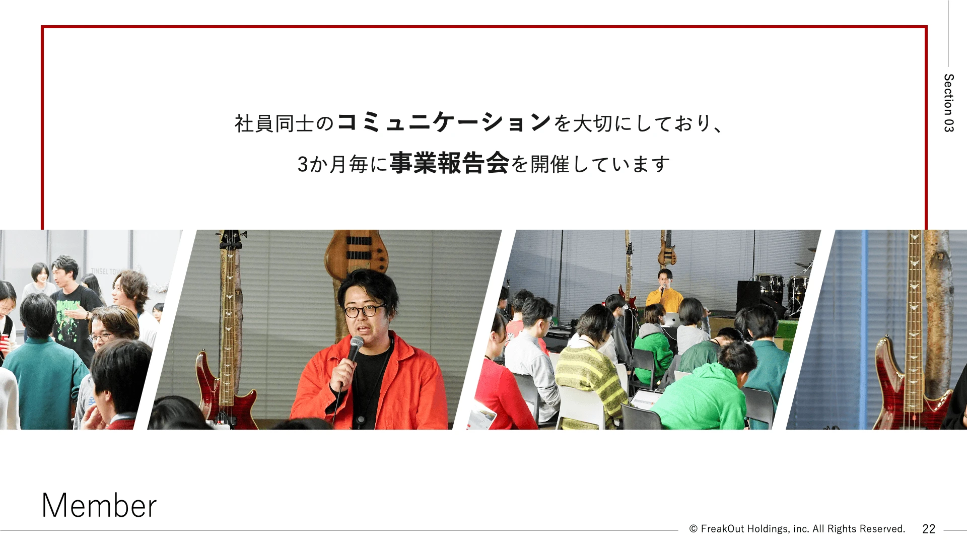 半期に一度、グループ会社が集う総会があります。グループの方針やビジョン、各会社の戦略を共有し、グループ全体を知ると同時に、その実現に向けた行動を改めて考えるきっかけにもなっています。